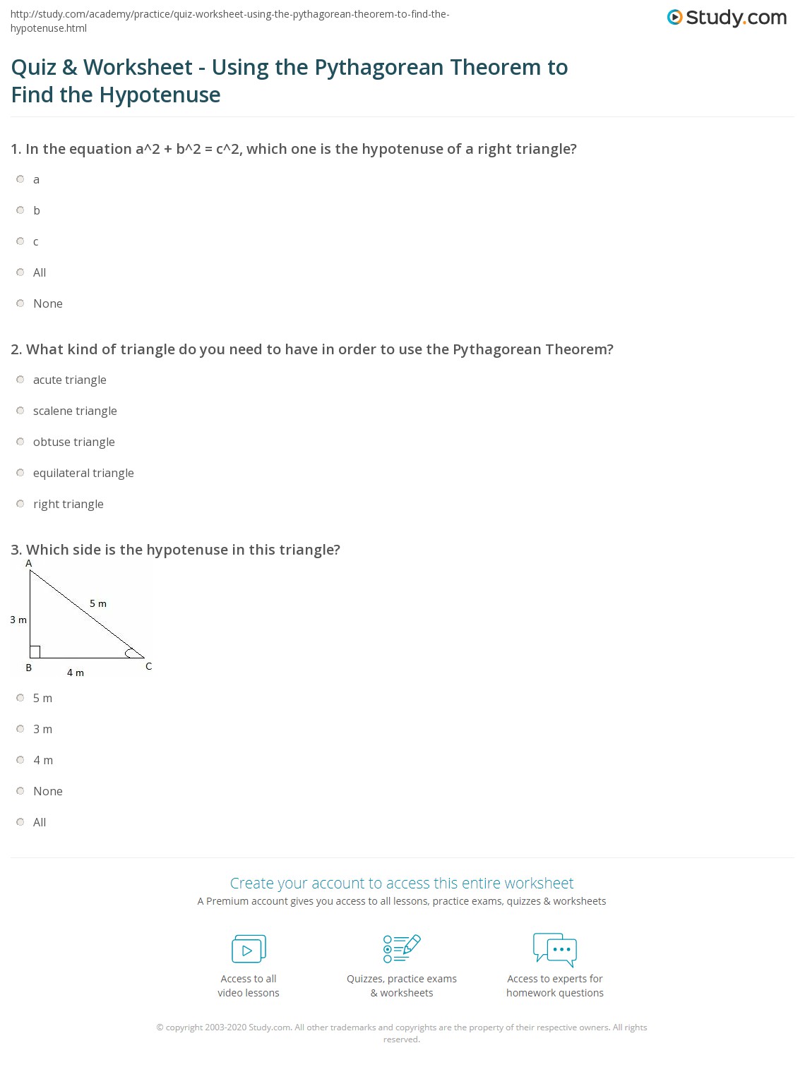 Help your pupils practise applying the formula c² = √a² + b² the fun way using this superb identifying the hypotenuse worksheet. Use the pythagorean theorem to find the length of the hypotenuse of each right triangle. If the hypotenuse measures 32. Theorem worksheet, you'll notice that the theorem enables you to find the . Find the length of the hypotenuse of the right triangle shown below.